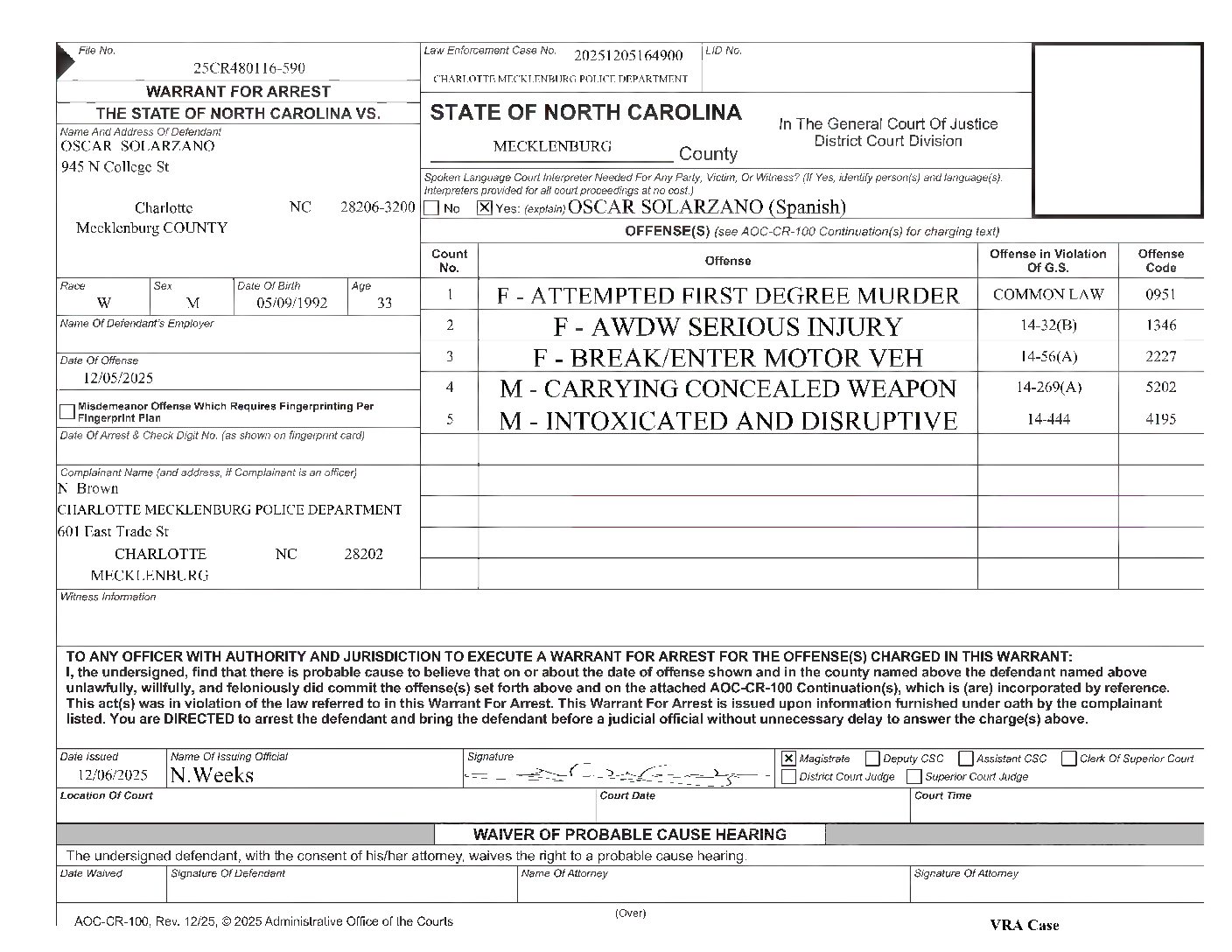 25CR480116-590_Solar Zano Warrant for Arrest