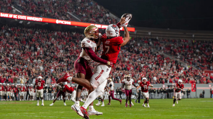 The Wolfpack came up with two interceptions on FSU quarterback Tommy Castellanos, both by senior cornerback Devon Marshall and one of which led directly to the initial scoring drive, and although they didn’t register a sack, the defense was credited with seven quarterback hurries and seven pass breakups (six of which were credited to Marshall as well).