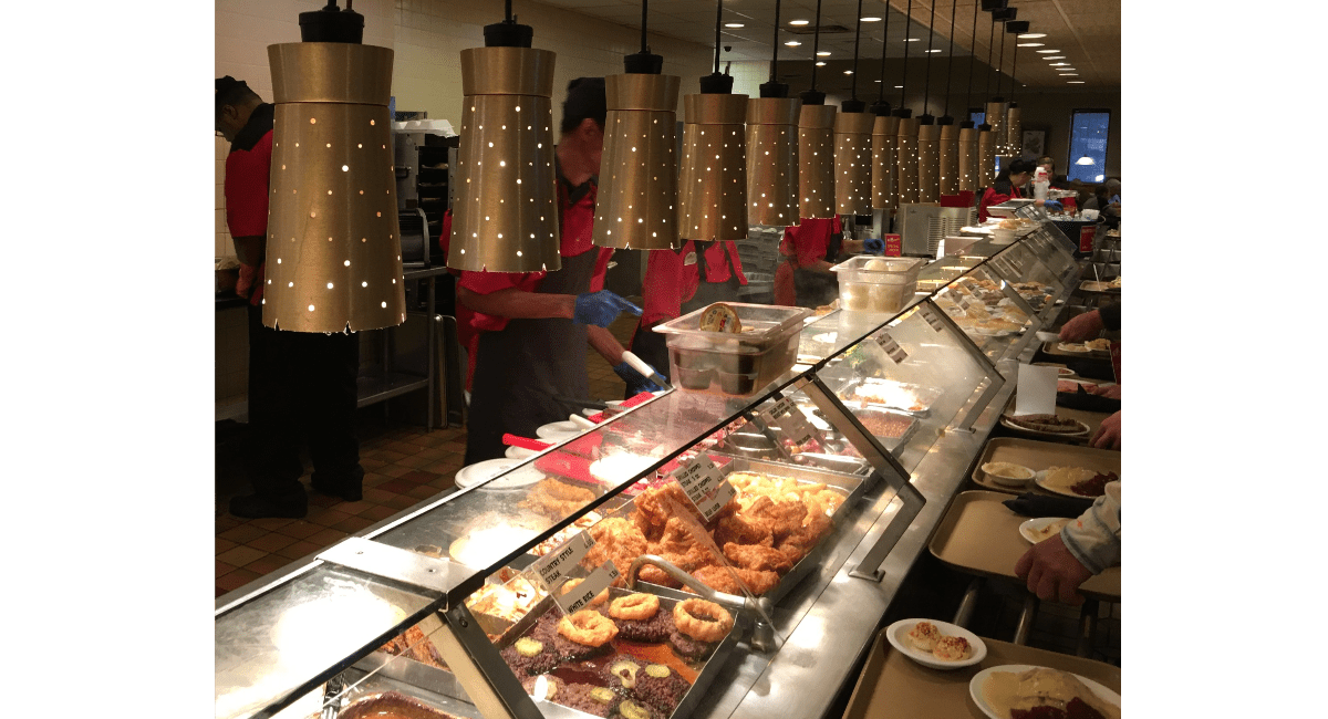 K&W_inPixio Customers choose from a variety offering including fried chicken, meatloaf and mashed potatoes at K&W Cafeteria in Fayetteville. (via Facebook)