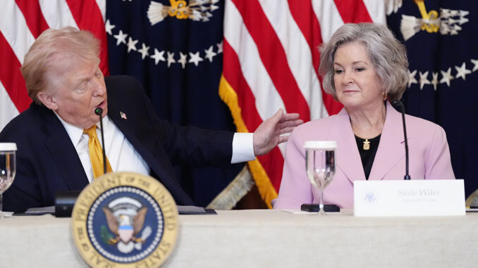 Within 20 minutes of Trump’s post, Wiles was sitting alongside the president at a meeting of the Kennedy Center board of trustees. In opening remarks, Trump said Wiles had already begun treatment and described her diagnosis as a “minor difficulty” that she would overcome.