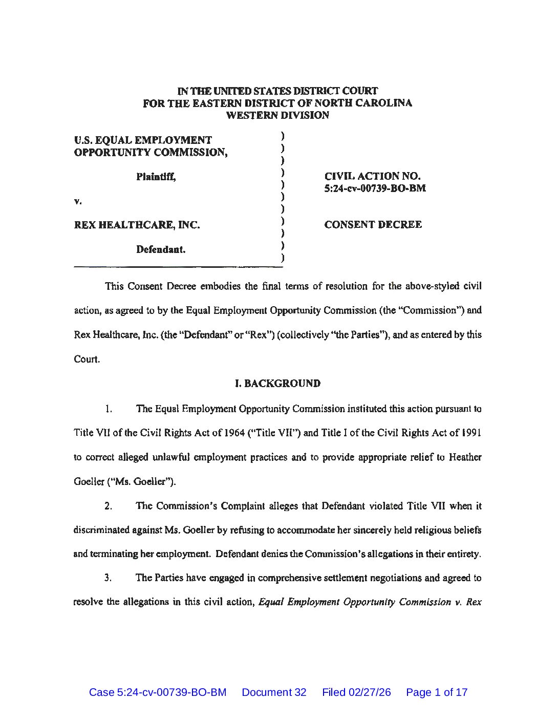 US EEOC v REX HEALTHCARE_COVID ACCOMODATIONS CONSENT DECREE